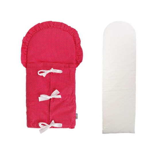 Sada potah klasické zavinovačky s trojitým vázáním v červené barvě s motivem puntíků a výplň do zavinovačky. Povlak zavinovačky je ze 100% bavlny a lze ho prát v pračce na 40° C, velikost povlaku a tedy i zavinovačky je cca 115 x 33 cm. Složení materiálu vložky (výplně) zavinovačky: povrch 100% bavlna, výplň 100% polyester. Výplň lze prát v pračce na 30° C, má rozměr cca 110 x 33 cm. Zavinovačka je vhodná jako výbava do porodnice, protože novorozená miminka jsou zvyklá na těsný prostor maminčina bříška a po zavinutí se cítí bezpečně a rychle se zklidní.