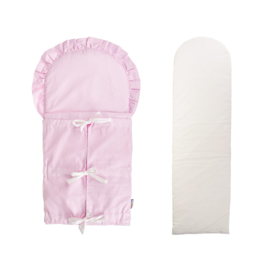 Sada potah klasické zavinovačky s trojitým vázáním v růžové barvě s motivem puntíků a výplň do zavinovačky. Povlak zavinovačky je ze 100% bavlny a lze ho prát v pračce na 40° C, velikost povlaku a tedy i zavinovačky je cca 115 x 33 cm. Složení materiálu vložky (výplně) zavinovačky: povrch 100% bavlna, výplň 100% polyester. Výplň lze prát v pračce na 30° C, má rozměr cca 110 x 33 cm. Zavinovačka je vhodná jako výbava do porodnice, protože novorozená miminka jsou zvyklá na těsný prostor maminčina bříška a po zavinutí se cítí bezpečně a rychle se zklidní.