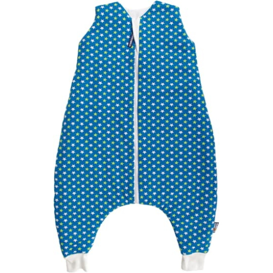 Dětský spací pytel s otvory pro nohy v petrolejové barvě a s motivem hvězdiček, miminko v něm může volně kopat nožičkami. Délka spacího pytle je cca 60 cm, to je výška dítěte k ramenům. Lze jej prát v pračce při 30 °C. Spací pytel má uprostřed zip a lze jej zcela otevřít, navíc má zip látkovou krytku, která zabraňuje přiskřípnutí krku do zipu. Spací pytel je ušitý ze tří vrstev: vrchní materiál 100% bavlna, výplň 100% polyester, podšívka 100% bavlna. Česká výroba.