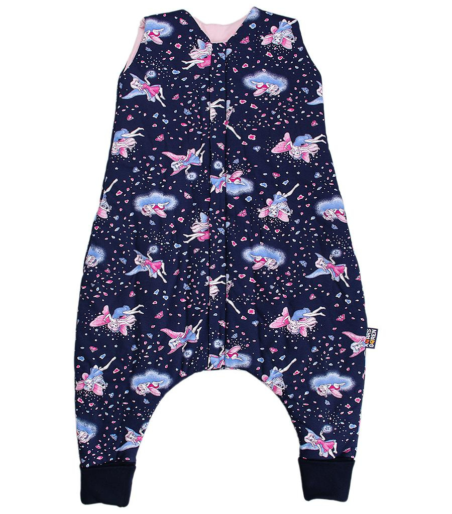 Spací pytel s nohavicemi pro novorozené miminko. Spací pytel je modrý s motivem víl. Délka spacího pytle je cca 60 cm, lze jej prát v pračce při 30 °C. Spací pytel má uprostřed zip a lze jej zcela otevřít, navíc má zip látkovou krytku, která zabraňuje přiskřípnutí krku do zipu. Spací pytel je ušitý ze tří vrstev: vrchní materiál 100% bavlna, výplň 100% polyester, podšívka 100% bavlna. Česká výroba.