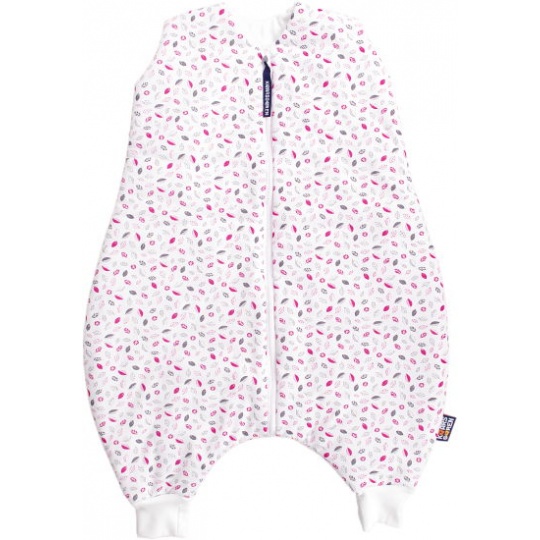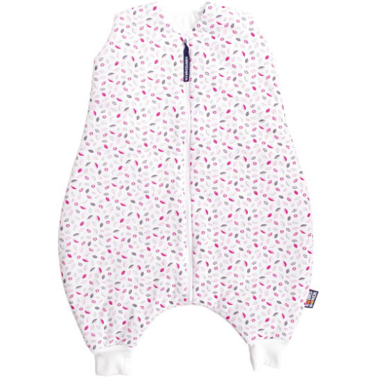 Spací pytel pro miminko s otvory pro nohy v bílé barvě a s motivem vínových lístečků. Délka spacího pytle je cca 70 cm, lze jej prát v pračce při 30 °C. Spací pytel má uprostřed zip a lze jej zcela otevřít, navíc má zip látkovou krytku, která zabraňuje přiskřípnutí krku do zipu. Spací pytel je ušitý ze tří vrstev: vrchní materiál 100% bavlna, výplň 100% polyester, podšívka 100% bavlna. Česká výroba.