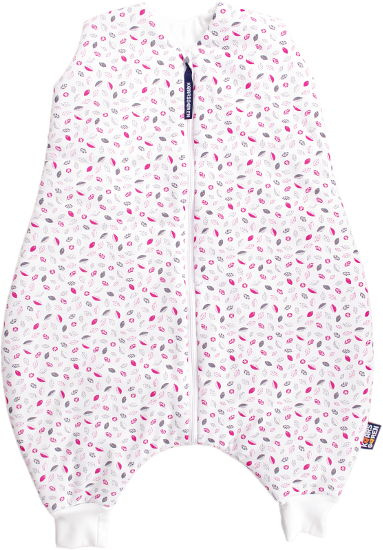 Spací pytel pro miminko s otvory pro nohy v bílé barvě a s motivem vínových lístečků. Délka spacího pytle je cca 70 cm, lze jej prát v pračce při 30 °C. Spací pytel má uprostřed zip a lze jej zcela otevřít, navíc má zip látkovou krytku, která zabraňuje přiskřípnutí krku do zipu. Spací pytel je ušitý ze tří vrstev: vrchní materiál 100% bavlna, výplň 100% polyester, podšívka 100% bavlna. Česká výroba.