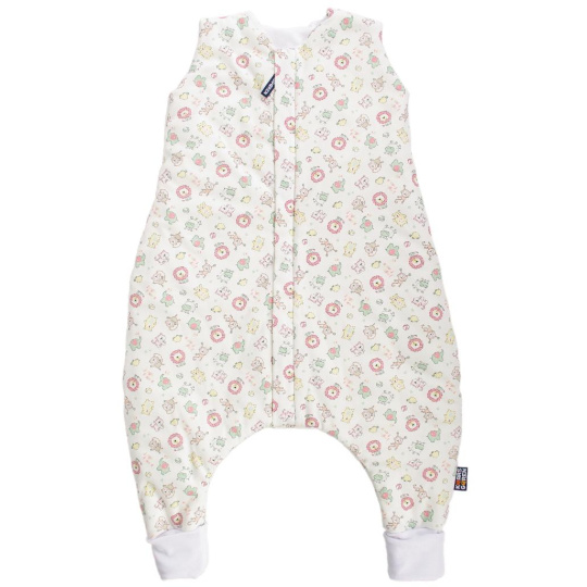 Dětský spací pytel s otvory pro nohy ve smetanové barvě s potiskem safari v růžové barvě, dítě v něm může volně kopat nožičkami. Délka spacího pytle je cca 80 cm, to je výška dítěte k ramenům. Lze jej prát v pračce při 30 °C. Spací pytel má uprostřed zip a lze jej zcela otevřít v obou směrech, navíc má zip látkovou krytku, která zabraňuje přiskřípnutí krku do zipu. Náplety na nožičkách lze překlopit a otvory uzavřít, takže nožičky zůstanou v teple. Spací pytel je ušitý ze tří vrstev: vrchní materiál 100% bavlna, výplň 100% polyester, podšívka 100% bavlna. Tog 2,61. Česká výroba.