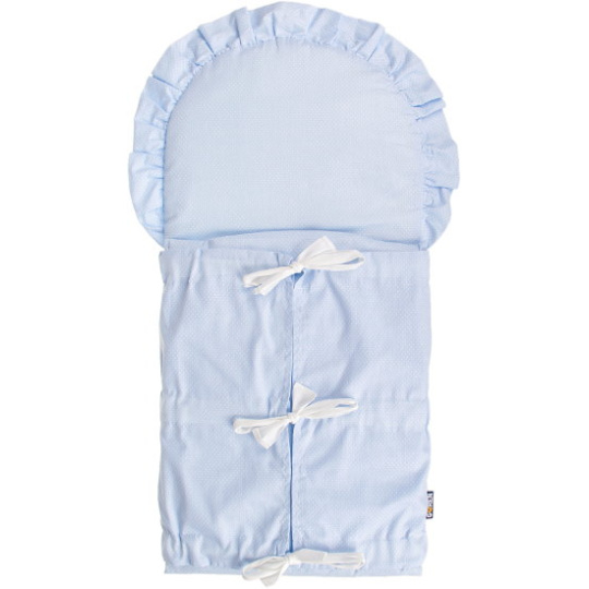 Potah klasické zavinovačky s trojitým vázáním ve světle-modré barvě s motivem bílých puntíků. K potahu je nutné dokoupit ještě výplň, aby byla zavinovačka kompletní. Doporučujeme pořídit dva, nebo tři potahy a jednu výplň. Povlak zavinovačky je ze 100% bavlny a lze ho prát v pračce na 40° C, velikost povlaku a tedy i zavinovačky je cca 115 x 33 cm. Zavinovačka je vhodná jako výbava do porodnice, protože novorozená miminka jsou zvyklá na těsný prostor maminčina bříška a po zavinutí se cítí bezpečně a rychle se zklidní.
