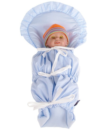 Potah klasické zavinovačky s trojitým vázáním ve světle-modré barvě s motivem bílých puntíků. K potahu je nutné dokoupit ještě výplň, aby byla zavinovačka kompletní. Doporučujeme pořídit dva, nebo tři potahy a jednu výplň. Povlak zavinovačky je ze 100% bavlny a lze ho prát v pračce na 40° C, velikost povlaku a tedy i zavinovačky je cca 115 x 33 cm. Zavinovačka je vhodná jako výbava do porodnice, protože novorozená miminka jsou zvyklá na těsný prostor maminčina bříška a po zavinutí se cítí bezpečně a rychle se zklidní.
