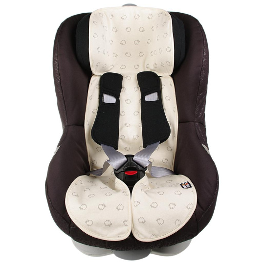 Univerzální vložka do dětské autosedačky velikosti 9 až 36 kg i 9 až 18 kg. Povrch je ze 100% bio-bavlny s motivem beránků, spodní strana je z 3D polyesteru, který zajistí proudění vzduchu. Praní na 30 °C. Vyrobené v České republice.