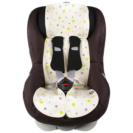 Univerzální vložka do dětské autosedačky velikosti 9 až 36 kg i 9 až 18 kg. Povrch je ze 100% bio-bavlny s motivem hvězdiček, spodní strana je z 3D polyesteru, který zajistí proudění vzduchu. Praní na 30 °C. Vyrobené v České republice.