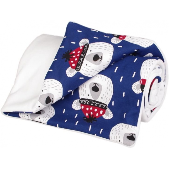 Zateplená dětská deka v provedení fleece, vatelín, bavlna. Barevnost bílá, motiv medvídci. Rozměr 70 x 100 cm. Praní na 30 °C. Česká výroba. Deka je vhodná do kočárku, do autosedačky i na doma.