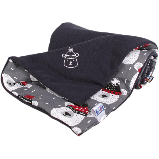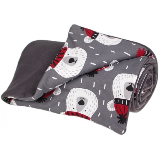Zateplená dětská deka v provedení fleece, vatelín, bavlna. Barevnost šedá, motiv medvídci. Rozměr 70 x 100 cm. Praní na 30 °C. Česká výroba. Deka je vhodná do kočárku, do autosedačky i na doma.