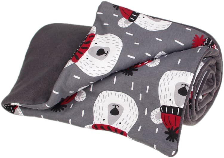 Zateplená dětská deka v provedení fleece, vatelín, bavlna. Barevnost šedá, motiv medvídci. Rozměr 70 x 100 cm. Praní na 30 °C. Česká výroba. Deka je vhodná do kočárku, do autosedačky i na doma.