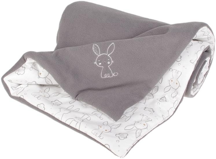 Zateplená dětská deka v provedení fleece, vatelín, bavlna. Barva šedá, motiv zajíčci. Rozměr 70 x 100 cm. Praní na 30 °C. Česká výroba. Deka je vhodná do kočárku, do autosedačky i na doma, lze použít i jako dětskou peřinku.