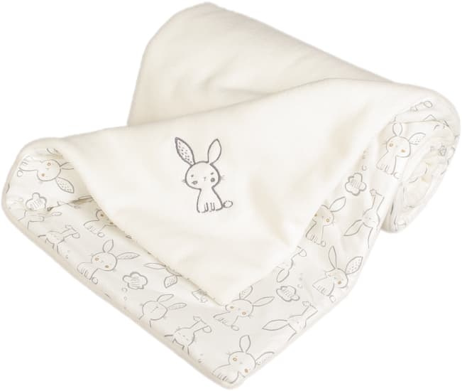 Zateplená dětská deka v provedení fleece, vatelín, bavlna. Barva smetanová, motiv zajíčci. Rozměr 70 x 100 cm. Praní na 30 °C. Česká výroba. Deka je vhodná do kočárku, do autosedačky i na doma, lze použít i jako dětskou peřinku.