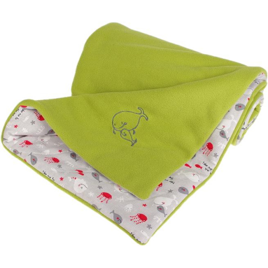 Zateplená dětská deka v provedení fleece, vatelín, bavlna. Barva zelená, motiv rybičky. Rozměr 70 x 100 cm. Praní na 30 °C. Česká výroba. Deka je vhodná do kočárku, do autosedačky i na doma, lze použít i jako dětskou peřinku.