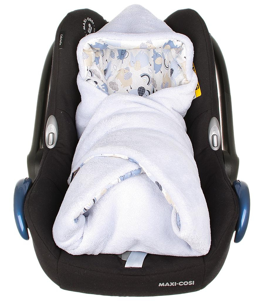 Zateplená zavinovačka v provedení wellsoft - vatelín - bavlna. Podšívka je z bavlny s motivem modrých sloníků, vnější strana z wellsoftu a výplň z vatelínu. Rozměr je cca 75 x 75 cm, praní na 30 °C. Zavinovačku je možné používat i do autosedačky s tříbodovým zapínáním. Česká výroba.