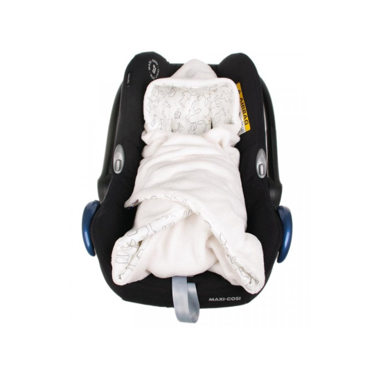 Zateplená zavinovačka v provedení wellsoft - vatelín - bavlna. Podšívka je z bavlny s motivem zajíčků, vnější strana z wellsoftu a výplň z vatelínu. Rozměr je cca 75 x 75 cm, praní na 30 °C. Zavinovačku je možné používat i do autosedačky s tříbodovým zapínáním. Česká výroba.