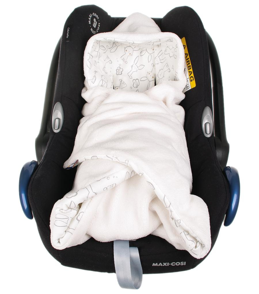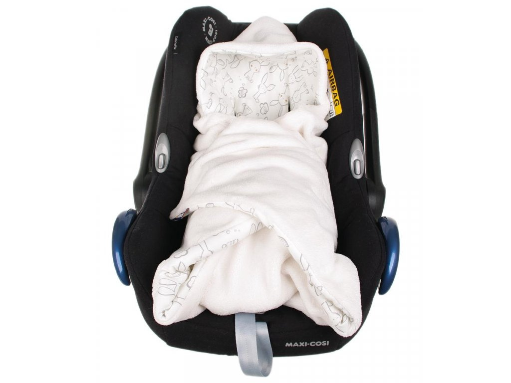 Zateplená zavinovačka v provedení wellsoft - vatelín - bavlna. Podšívka je z bavlny s motivem zajíčků, vnější strana z wellsoftu a výplň z vatelínu. Rozměr je cca 75 x 75 cm, praní na 30 °C. Zavinovačku je možné používat i do autosedačky s tříbodovým zapínáním. Česká výroba.