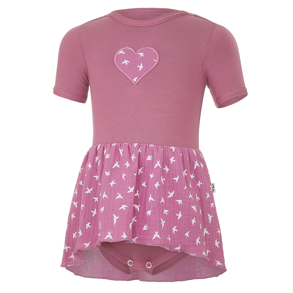 Little Angel-Body šaty tenké KR Outlast® - tm.starorůžová/tm.starorůžová vlaštovky Velikost oblečení: 80