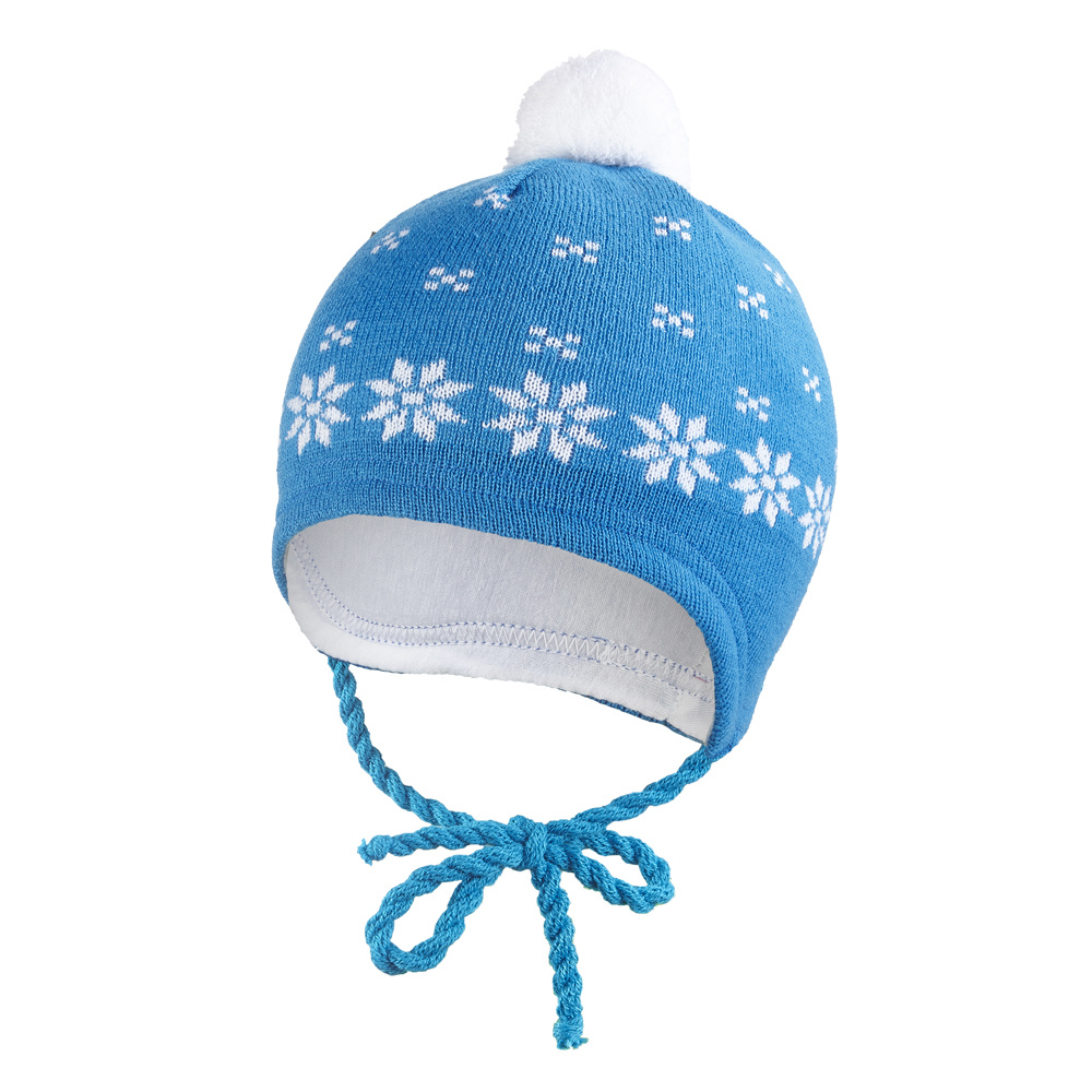 Dětská pletená zavazovací čepice - Outlast®, žakár s norským vzorem, je podšita bavlněným úpletem s příměsí termoregulačního materiálu Outlast®.