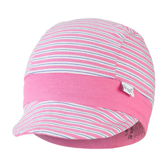 Little Angel-Kšiltovka tenká pruh Outlast® - pruh růžovozelený/tm.růžová Velikost: 3 | 42-44 cm