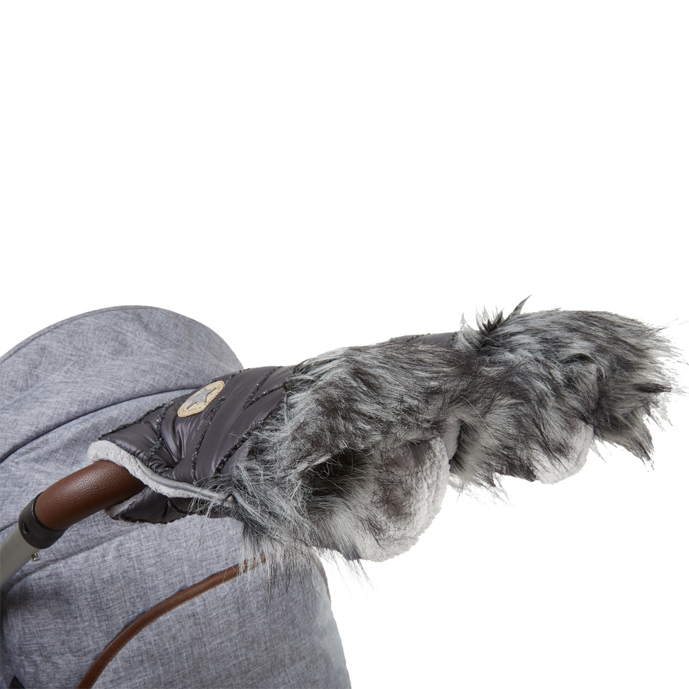 Little Angel-Rukavice na kočár DE LUXE pár - tm.šedá střibrný prošev/sv.šedá