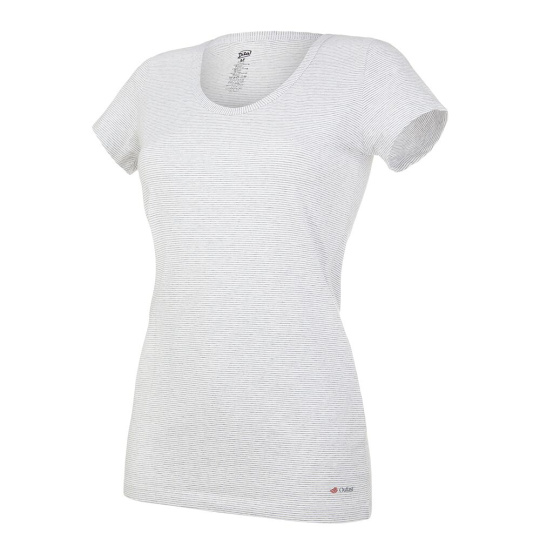 Little Angel-Tričko dámské KR tenké výstřih U Outlast® - pruh bílošedý melír Velikost oblečení: XL