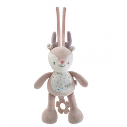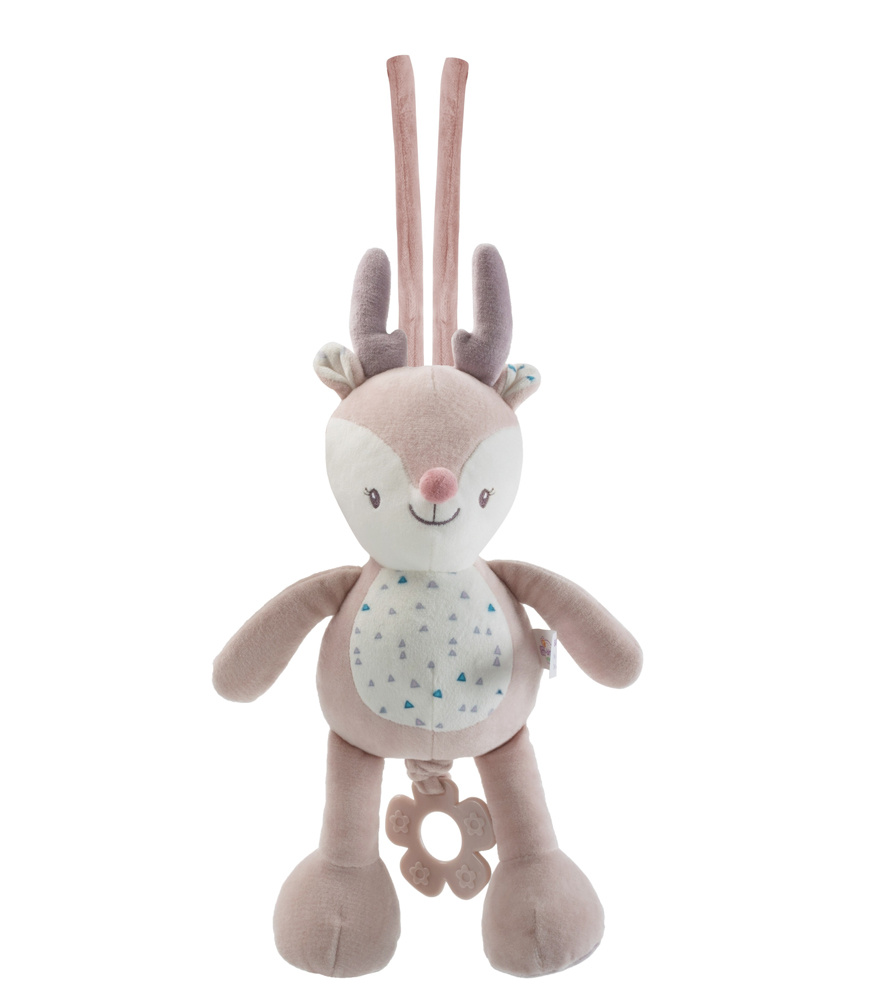 Závěsná hračka se zvukem srnka Suzi potěší každého prcka. Díky více funkcím stimuluje smysly děťátka. Kousátko zklidní dítě při prořezávání prvních zoubků. Po zatažení hračky se ozve uklidňující melodie. Díky závěsným šňůrkám lze hračku pověsit kamkoli budete potřebovat. Vlastnosti: - Kousátko pro první zoubky - Po zatažení se ozve uklidňující melodie - Rozvíjí smysly děťátka - Díky závěsným šňůrkám lze hračku pověsit na kočárek, autosedačku či postýlku - Materiál příjemný na dotek Rozměry produktu: 30x14x7 cm V nabídce Petite&Mars naleznete i další plyšové kamarády.
