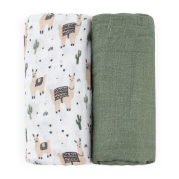 PETITE&MARS Přikrývka bambusová mušelínová 2ks Misty Llama Vibes 120 x 120 cm