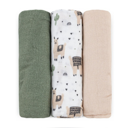 PETITE&MARS Sada plen bambusová mušelínová 3ks Moussy Llama Vibes 68 x 68 cm