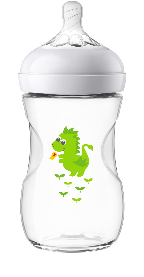 Nejpřirozenější způsob krmení z láhve láhev Natural 260 ml s obrázkem draka dudlík s pomalým průtokem pro děti od 1 měsíce Ergonomický tvar láhve umožňuje maximální pohodlí při krmení. Poskytuje komfort i pro malé dětské ručičky. Široké hrdlo láhve ulehčuje plnění a čištění. Malé množství částí umožňuje rychlé a snadné sestavení. Těsně přiléhající víčko zabraňuje vylévání obsahu lahvičky a není tedy třeba použít těsnicí víčka. Přirozené přisátí díky širokému dudlíku ve tvaru prsu Široký dudlík ve tvaru prsu podporuje přirozené přisátí podobně jako při kojení. Snadná kombinace kojení s krmením z láhve. Inovativní dvojitý ventil dudlíku umožňuje proudění vzduchu do láhve, nikoliv do bříška dítěte. Jedinečný design dudlíku ve tvaru okvětních lístků Okvětní lístky zvyšují měkkost a ohybnost dudlíku - pohodlnější a spokojenější krmení. Láhev neobsahuje BPA a je vyrobena z polypropylenu. Philips AVENT od roku 1984 navrhuje a vyrábí výrobky inspirované přírodou, které jsou výsledkem rozsáhlého výzkumu a klinických testů. Podívejte se na video: UPOZORNĚNÍ! - Neustálé a dlouhodobé sání tekutin způsobuje zubní kaz. - Před krmením vždy zkontrolujte teplotu jídla. - Při prvním náznaku poškození nebo opotřebení výrobek vyhoďte. - Nepoužívané součásti výrobku uchovávejte mimo dosah dětí. - Nikdy nespojujte se šnůrami, stuhami, tkaničkami nebo s volnými částmi oblečení, mohlo by dojít k uškrcení dítěte. - Nikdy nepoužívejte dudlík na krmení jako běžný dudlík. - Používejte tento výrobek vždy pod dohledem dospělých. K ohřátí jídla nebo pití pro děti se nedoporučuje používat mikrovlnnou troubu. Mikrovlnné trouby mohou zničit cenné živiny jídla/nápojů a mohou v určitých místech vytvářet vysoké teploty. Pokud se rozhodnete pro ohřev jídla v mikrovlnné troubě, ohřáté jídlo/nápoje velmi pečlivě promíchejte a zajistěte rovnoměrné rozložení tepla. Před podáváním také zkontrolujte teplotu. Nádobku vkládejte do mikrovlnné trouby vždy bez zajišťovacího kroužku, ventilu AirFree, dudlíku a víčka. Nedovolte dětem, aby si hrály s malými částmi nebo aby při používání lahve chodily či běhaly. Mléko, které zbude po krmení, vždy vylijte. Před každým použitím výrobek zkontrolujte a natáhněte krmicí dudlík do všech směrů. Při prvním náznaku poškození nebo opotřebení výrobek vyhoďte. Adresa dodavatele: Philips Consumer Lifestyle B.V., Tussendiepen 4, 9206 AD Drachten, The Netherlands, PH.CentralRegulatoryOfficer@philips.com