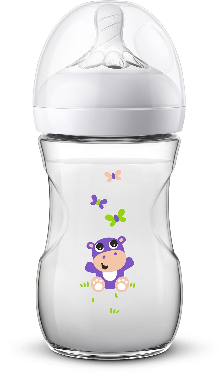 Nejpřirozenější způsob krmení z láhve láhev Natural 260 ml s obrázkem hrocha dudlík s pomalým průtokem pro děti od 1 měsíce Ergonomický tvar láhve umožňuje maximální pohodlí při krmení. Poskytuje komfort i pro malé dětské ručičky. Široké hrdlo láhve ulehčuje plnění a čištění. Malé množství částí umožňuje rychlé a snadné sestavení. Těsně přiléhající víčko zabraňuje vylévání obsahu lahvičky a není tedy třeba použít těsnicí víčka. Přirozené přisátí díky širokému dudlíku ve tvaru prsu Široký dudlík ve tvaru prsu podporuje přirozené přisátí podobně jako při kojení. Snadná kombinace kojení s krmením z láhve. Inovativní dvojitý ventil dudlíku umožňuje proudění vzduchu do láhve, nikoliv do bříška dítěte. Jedinečný design dudlíku ve tvaru okvětních lístků Okvětní lístky zvyšují měkkost a ohybnost dudlíku - pohodlnější a spokojenější krmení. Láhev neobsahuje BPA a je vyrobena z polypropylenu. Philips AVENT od roku 1984 navrhuje a vyrábí výrobky inspirované přírodou, které jsou výsledkem rozsáhlého výzkumu a klinických testů. Podívejte se na video: UPOZORNĚNÍ! - Neustálé a dlouhodobé sání tekutin způsobuje zubní kaz. - Před krmením vždy zkontrolujte teplotu jídla. - Při prvním náznaku poškození nebo opotřebení výrobek vyhoďte. - Nepoužívané součásti výrobku uchovávejte mimo dosah dětí. - Nikdy nespojujte se šnůrami, stuhami, tkaničkami nebo s volnými částmi oblečení, mohlo by dojít k uškrcení dítěte. - Nikdy nepoužívejte dudlík na krmení jako běžný dudlík. - Používejte tento výrobek vždy pod dohledem dospělých. K ohřátí jídla nebo pití pro děti se nedoporučuje používat mikrovlnnou troubu. Mikrovlnné trouby mohou zničit cenné živiny jídla/nápojů a mohou v určitých místech vytvářet vysoké teploty. Pokud se rozhodnete pro ohřev jídla v mikrovlnné troubě, ohřáté jídlo/nápoje velmi pečlivě promíchejte a zajistěte rovnoměrné rozložení tepla. Před podáváním také zkontrolujte teplotu. Nádobku vkládejte do mikrovlnné trouby vždy bez zajišťovacího kroužku, ventilu AirFree, dudlíku a víčka. Nedovolte dětem, aby si hrály s malými částmi nebo aby při používání lahve chodily či běhaly. Mléko, které zbude po krmení, vždy vylijte. Před každým použitím výrobek zkontrolujte a natáhněte krmicí dudlík do všech směrů. Při prvním náznaku poškození nebo opotřebení výrobek vyhoďte. Adresa dodavatele: Philips Consumer Lifestyle B.V., Tussendiepen 4, 9206 AD Drachten, The Netherlands, PH.CentralRegulatoryOfficer@philips.com