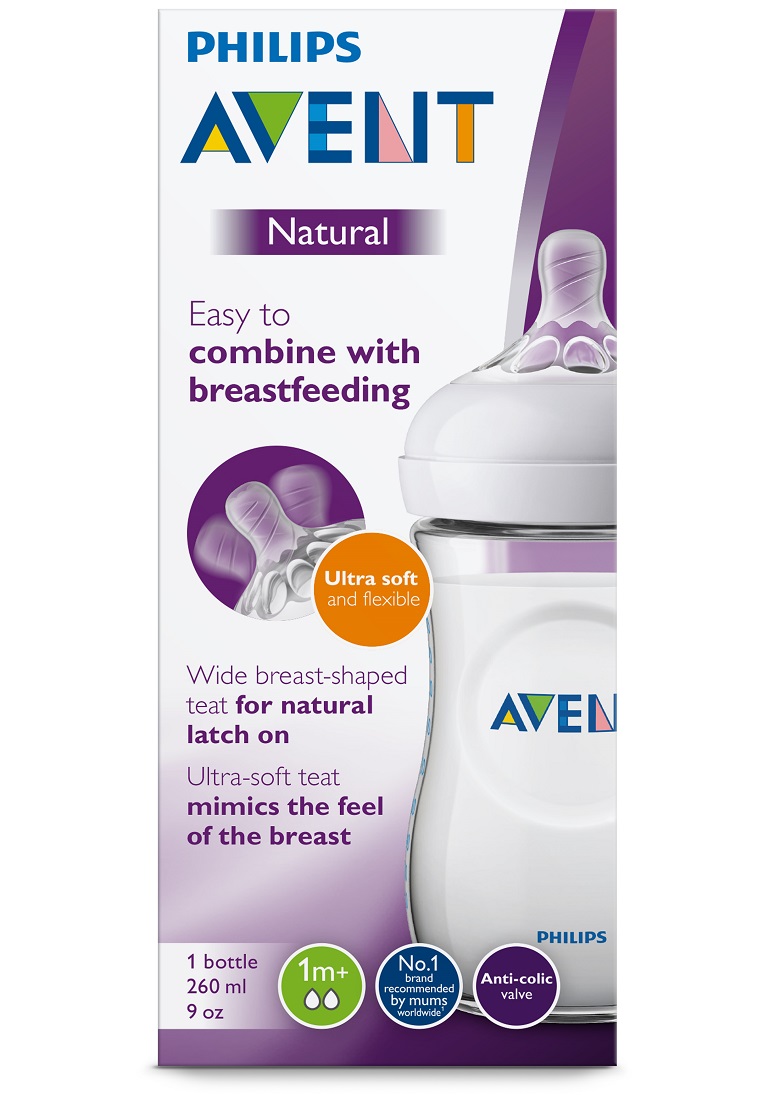 Nejpřirozenější způsob krmení z láhve láhev Natural 260 ml dudlík s pomalým průtokem pro děti od 1 měsíce Ergonomický tvar láhve umožňuje maximální pohodlí při krmení. Poskytuje komfort i pro malé dětské ručičky. Široké hrdlo láhve ulehčuje plnění a čištění. Malé množství částí umožňuje rychlé a snadné sestavení. Těsně přiléhající víčko zabraňuje vylévání obsahu lahvičky a není tedy třeba použít těsnicí víčka. Přirozené přisátí díky širokému dudlíku ve tvaru prsu Široký dudlík ve tvaru prsu podporuje přirozené přisátí podobně jako při kojení. Snadná kombinace kojení s krmením z láhve. Inovativní dvojitý ventil dudlíku umožňuje proudění vzduchu do láhve, nikoliv do bříška dítěte. Jedinečný design dudlíku ve tvaru okvětních lístků Okvětní lístky zvyšují měkkost a ohybnost dudlíku - pohodlnější a spokojenější krmení. Láhev neobsahuje BPA a je vyrobena z polypropylenu. Philips AVENT od roku 1984 navrhuje a vyrábí výrobky inspirované přírodou, které jsou výsledkem rozsáhlého výzkumu a klinických testů. Podívejte se na video: UPOZORNĚNÍ! - Neustálé a dlouhodobé sání tekutin způsobuje zubní kaz. - Před krmením vždy zkontrolujte teplotu jídla. - Při prvním náznaku poškození nebo opotřebení výrobek vyhoďte. - Nepoužívané součásti výrobku uchovávejte mimo dosah dětí. - Nikdy nespojujte se šnůrami, stuhami, tkaničkami nebo s volnými částmi oblečení, mohlo by dojít k uškrcení dítěte. - Nikdy nepoužívejte dudlík na krmení jako běžný dudlík. - Používejte tento výrobek vždy pod dohledem dospělých. K ohřátí jídla nebo pití pro děti se nedoporučuje používat mikrovlnnou troubu. Mikrovlnné trouby mohou zničit cenné živiny jídla/nápojů a mohou v určitých místech vytvářet vysoké teploty. Pokud se rozhodnete pro ohřev jídla v mikrovlnné troubě, ohřáté jídlo/nápoje velmi pečlivě promíchejte a zajistěte rovnoměrné rozložení tepla. Před podáváním také zkontrolujte teplotu. Nádobku vkládejte do mikrovlnné trouby vždy bez zajišťovacího kroužku, ventilu AirFree, dudlíku a víčka. Nedovolte dětem, aby si hrály s malými částmi nebo aby při používání lahve chodily či běhaly. Mléko, které zbude po krmení, vždy vylijte. Před každým použitím výrobek zkontrolujte a natáhněte krmicí dudlík do všech směrů. Při prvním náznaku poškození nebo opotřebení výrobek vyhoďte. Adresa dodavatele: Philips Consumer Lifestyle B.V., Tussendiepen 4, 9206 AD Drachten, The Netherlands, PH.CentralRegulatoryOfficer@philips.com