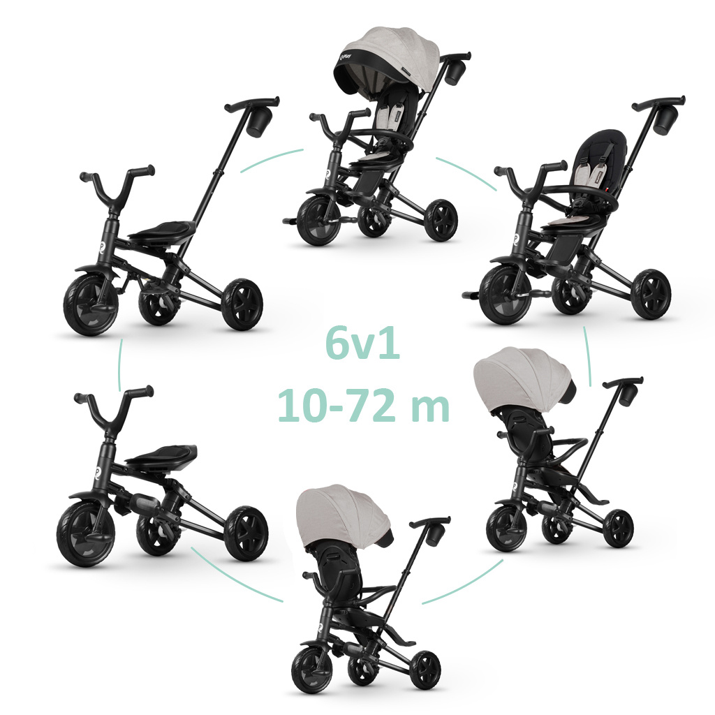 Německá společnost QPlay GmbH byla založena v roce 2016 a během své krátké existence dokázala expandovat do více než 50-ti zemí. Jejich výrobky se vyznačují vysokou kvalitou, splňujíce a převyšujíce všechny oficiální normy schválené testovacími laboratořemi. Qplay patentovaná technologie manévrování je navržena do posledního detailu pro pohodlí rodičů. Výsledkem jsou pokročilé, elegantní tříkolky, které se řídí hladce a snadno. Jsou navrženy tak, aby byly intuitivní a snadno se používaly. Přidejte k tomu inteligentní funkční design a uvidíte, jak to jde úžasně dohromady. Díky všem těmto věcem získává Qplay již téměř desetiletí stále nová a nová ocenění v tomto odvětví. Vlastnosti: - Tříkolka se špičkovými kolečky z pevné antivibrační pěny, která poskytují maximální pohodlí a stabilitu, protože absorbují většinu nárazů a zmírňují otřesy nerovného terénu - 360° otočná poloha - Skládací systém pro snadnou přepravu a skladování - Pohodlné sedátko s nastavitelným opěradlem - Nastavitelný volant - Stahovací - odnímatelná sluneční clona s UV ochranou UPF 50+ s prodloužením pro větší pokrytí dítěte. - Funkce volnoběhu pro pohodlí a bezpečnost během jízdy. Tato funkce nám umožňuje vybrat si, kdy se pedál otáčí spolu s kolečkem a kdy ne - Sklopná přední opěrka nohou pro první měsíce života dítěte - Držák na sklenici - 5-bodový bezpečnostní pás - Odnímatelná ochranná tyč - Zadní brzdy - Odnímatelný mechanismus řízení - Se šesti vývojovými stupni, vhodné od 10 do 72 měsíců - Hmotnost tříkolky: 7,1 kg - Rozměry rozložené tříkolky: 79 x 43 x 93 cm (D x Š x V) - Rozměry složené tříkolky: 32 x 36 x 61 cm (D x Š x V) VAROVÁNÍ!: Montáž zajišťuje dospělá osoba. Je nutný nepřetržitý dohled dospělé osoby; nikdy nepoužívejte v blízkosti bazénů, kopců, schodů nebo svažitých příjezdových cest; nepoužívejte na silnici s plným provozem. Vyžaduje se pevná obuv. Vhodné pouze pro jednoho uživatele. Nepoužívejte jako dopravní prostředek. Před jízdou je nutné zkontrolovat všechny upevňovací prvky a při jízdě pro bezpečnost dítěte noste ochranné vybavení, jako je přilba, chrániče či rukavice. Opotřebované nebo poškozené díly ihned vyměňte. Maximální hmotnost je 25 kg. Vhodné pro děti ve věku 10 až 72 měsíců. Adresa dodavatele: ags 92, s.r.o., Drahobejlova 2515/18, 190 00 Praha Česká republika info@ags92.com