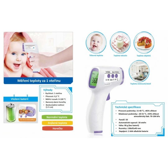 · 2 režimy měření (režim tělesné teploty a režim teploty předmětu)