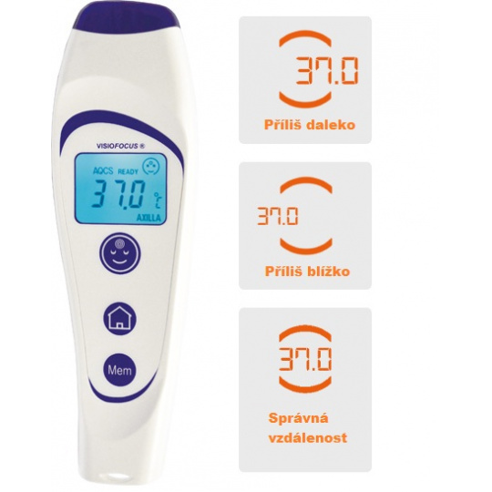 Unikátní bezkontaktní teploměr VisioFocus je jediným teploměrem na světě s možností projekce teploty přímo na čele či jiné části těla. Je ideální pro měření tělesné teploty zejména u dětí, ale i dospělých. Díky jedinečnému a patentovanému optickému zaměřovacímu systému teploměr určí správnou vzdálenost mezi teploměrem a měřeným místem.