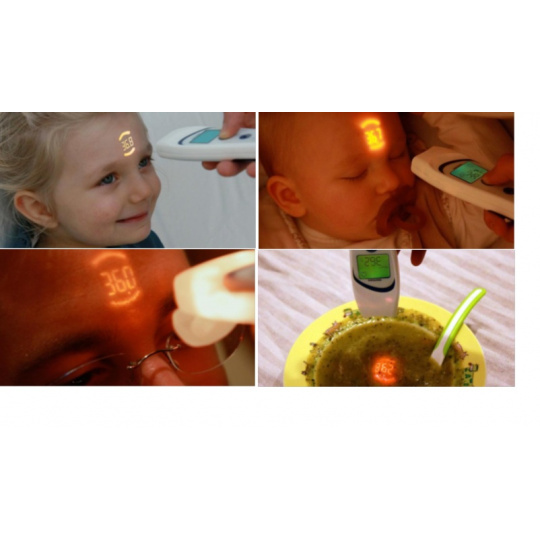 - 5 v 1 (měření tělesné teploty jakož i teploty okolí, vzduchu, koupele, tekutin, jídla a předmětů).